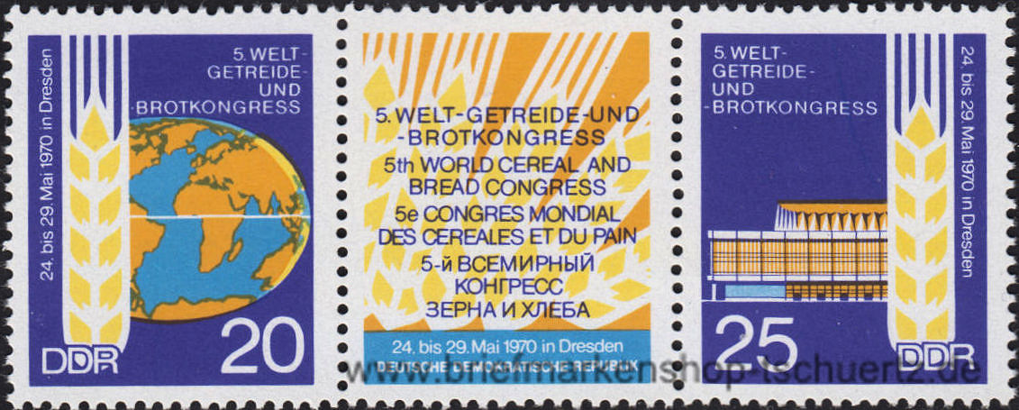 1970, Welt-Getreide und BrotkongressSatz (2 W.), Dreierstreifen, postfrisch
