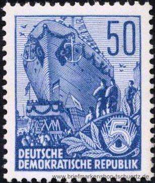 1957, Freimarken: Fünfjahrplan50 (Pf) - Hochseeschiff auf StapelWasserzeichen 3 X, gezähnt K 14Einzelmarke, postfrisch
