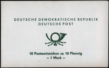 Sondermarken-Heftchen SMHD 1 epostfrischMi. Wert 100,- €Text: grünPosthorn: grünDruckvermerk: ODR 214 II-15-17 Ag 114/138/72 200Inhalt: 1 Mark zu 10 x 10 Pf / 10 x Mi.Nr. 1835