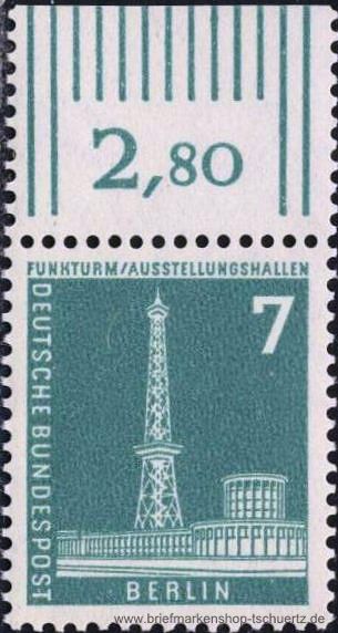 1956, Berliner Stadtbilder7 (Pf) - FunkturmWalzendruck, glatte GummierungOberrandstück, postfrisch