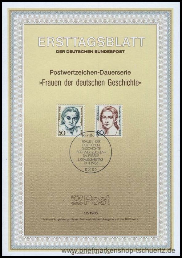 1986, Frauen der deutschen GeschichteErsttagsblatt