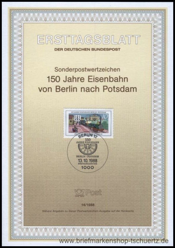1988, 150 Jahre Eisenbahn Berlin-Potsdam Ersttagsblatt