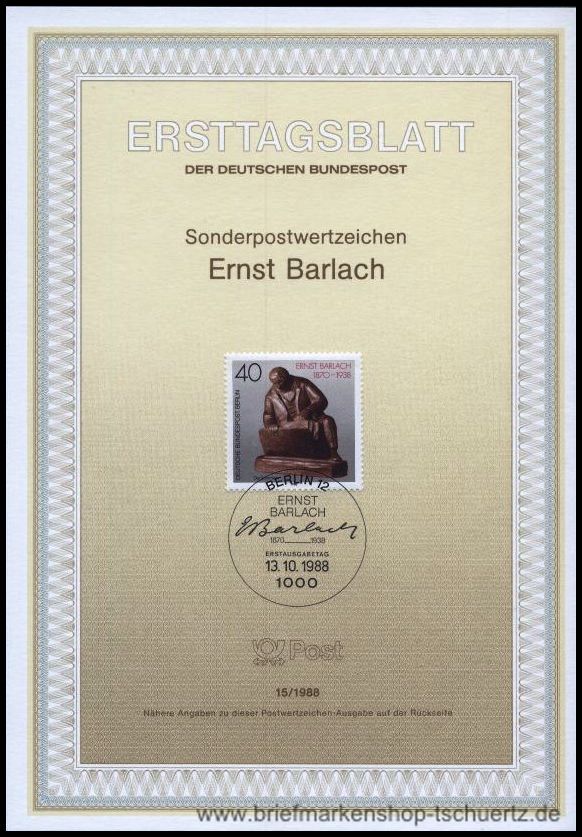 1988, Ernst Barlach Ersttagsblatt