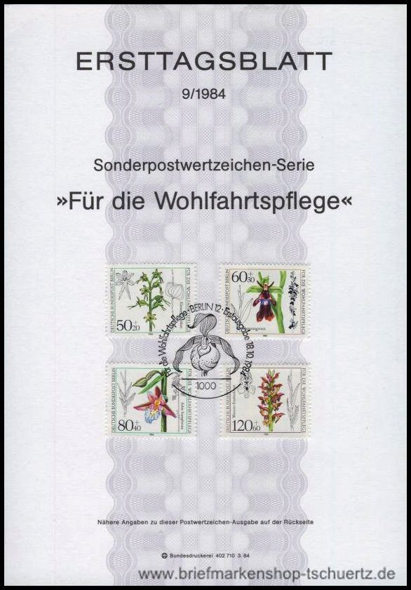 1984, Wohlfahrt: OrchideenErsttagsblatt