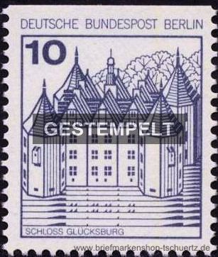 1977, Freimarke: Burgen und Schlösser 10 (Pf) - Schloss Glücksburg oben geschnitten, Buchdruck (MH)Einzelmarke, gestempelt