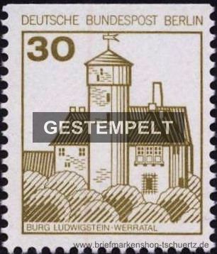 1977, Freimarke: Burgen und Schlösser 30 (Pf) - Burg Ludwigstein, Werratal oben geschnitten, Buchdruck (MH)Einzelmarke, gestempelt