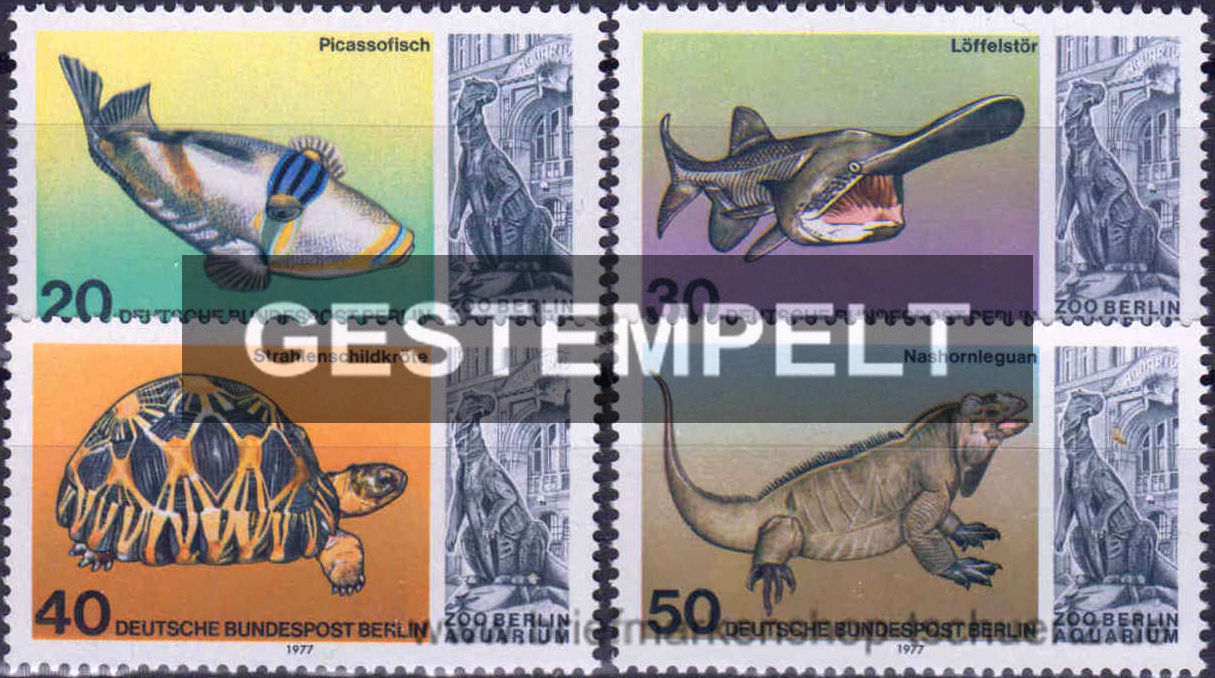 1977, 25. Jahrestag der Wiedereröffnung des Aquariums im Berliner ZooSatz (4 W.), gestempelt