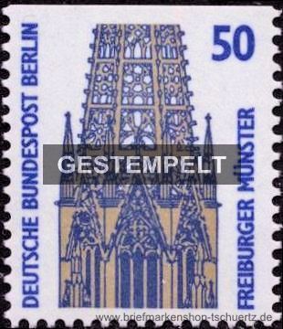 1987, Freimarke: Sehenswürdigkeiten 50 (Pf) - Turm des Freiburger Münstersoben geschnittenEinzelmarke, gestempelt