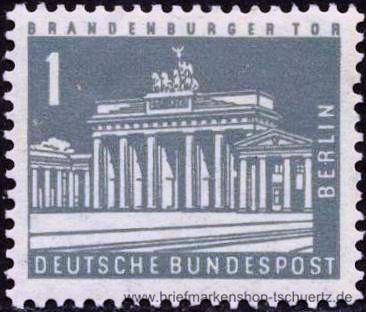 1956, Freimarke: Berliner Stadtbilder1 (Pf) - Brandenburger Tornicht fluoreszierendes festeres weißes Papierglatte Gummierung Einzelmarke, postfrisch