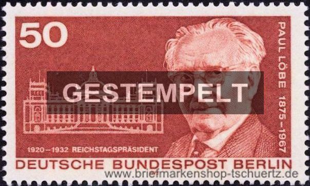 1975, 100. Geburtstag von Paul LöbeSatz (1 W.), gestempelt mit Ersttagssonderstempel Berlin