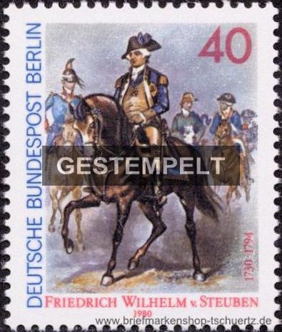 1980, 250.Geburtstag von Friedrich Wilhelm von Steuben Satz (1 W.), gestempelt mit Ersttagssonderstempel Berlin