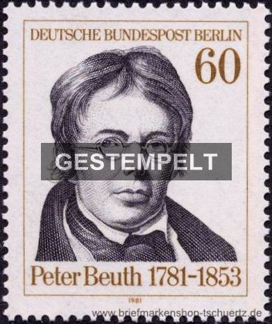 1981, 200. Geburtstag von Peter Christian Wilhelm BeuthSatz (1 W.), gestempelt mit Ersttagssonderstempel Berlin