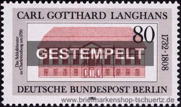 1982, 250. Geburtstag von Carl Gotthard LanghansSatz (1 W.), gestempelt mit Ersttagssonderstempel Berlin