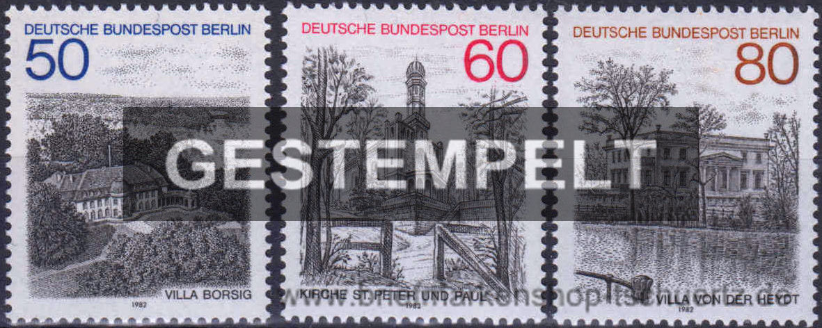 1982, Berlin-Ansichten (IV)Satz (3 W.), gestempelt mit Ersttagssonderstempel Berlin