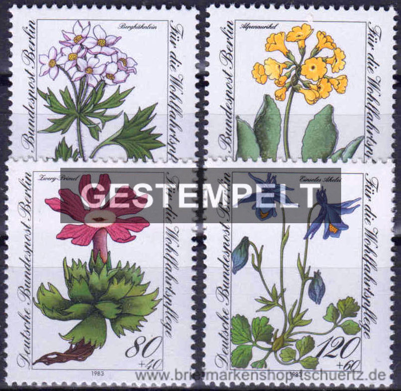 1983, Wohlfahrt: Gefährdete Alpenblumen Satz (4 W.), gestempelt mit Ersttagssonderstempel Berlin