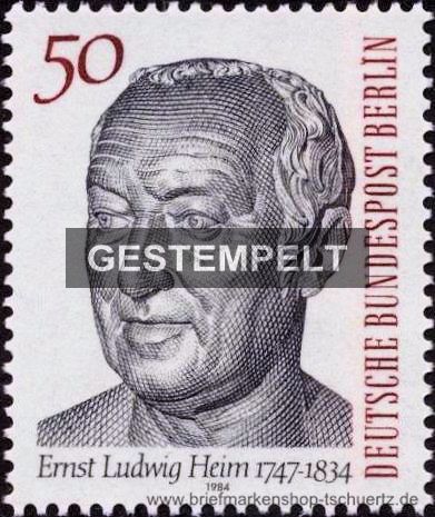 1984, 150. Todestag von Dr. Ernst Ludwig HeimSatz (1 W.), gestempelt mit Ersttagssonderstempel Berlin