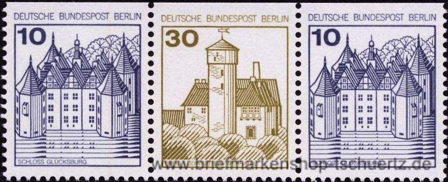 1980, Burgen und SchlösserMiNr. 532 C + 534 C + 532 C / 10 (Pf) + 30 (Pf) + 10 (Pf)Zusammendruck / waagrechter Dreierstreifen, postfrisch