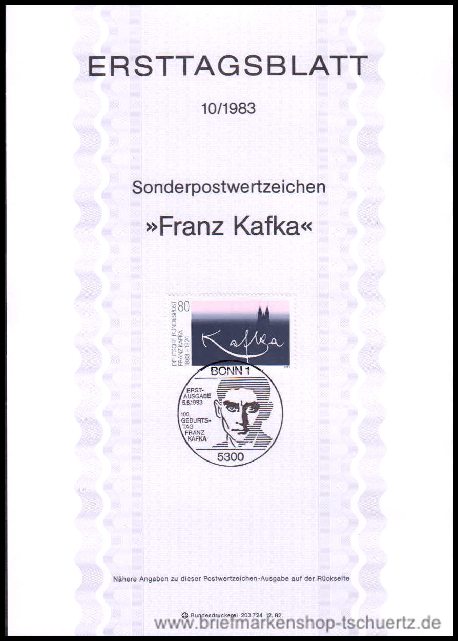 1983, 100.Geburtstag von Franz Kafka Ersttagsblatt