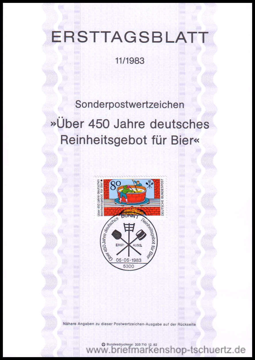 1983, 450 Jahre deutsches Reinheitsgebot für Bier Ersttagsblatt