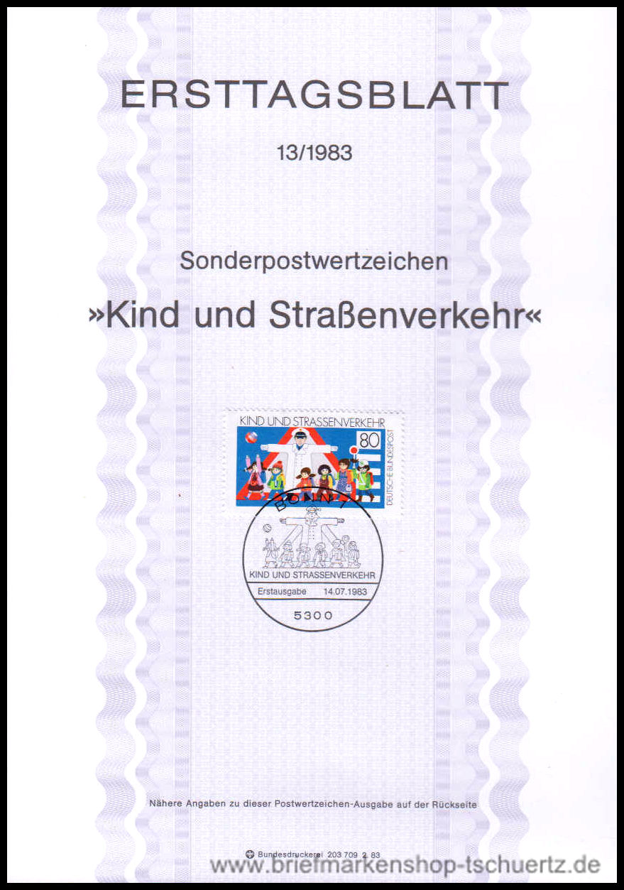 1983, Kind und Straßenverkehr Ersttagsblatt