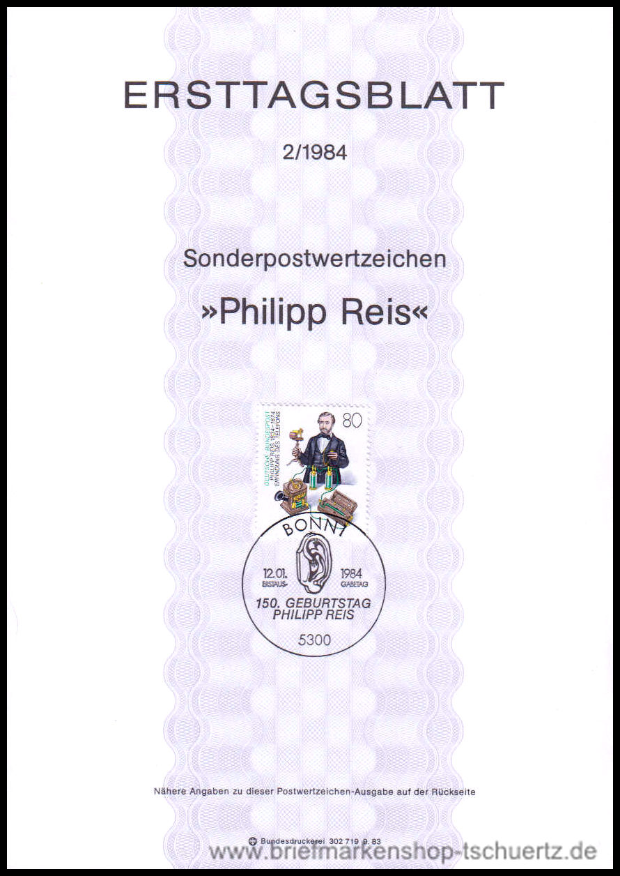 1984, 150. Geburtstag von Philipp Reis Ersttagsblatt