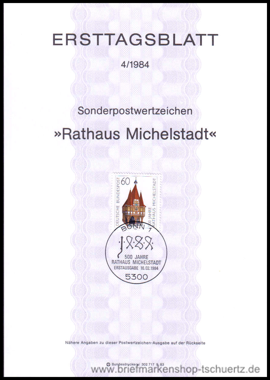 1984, 500 Jahre Rathaus Michelstadt Ersttagsblatt