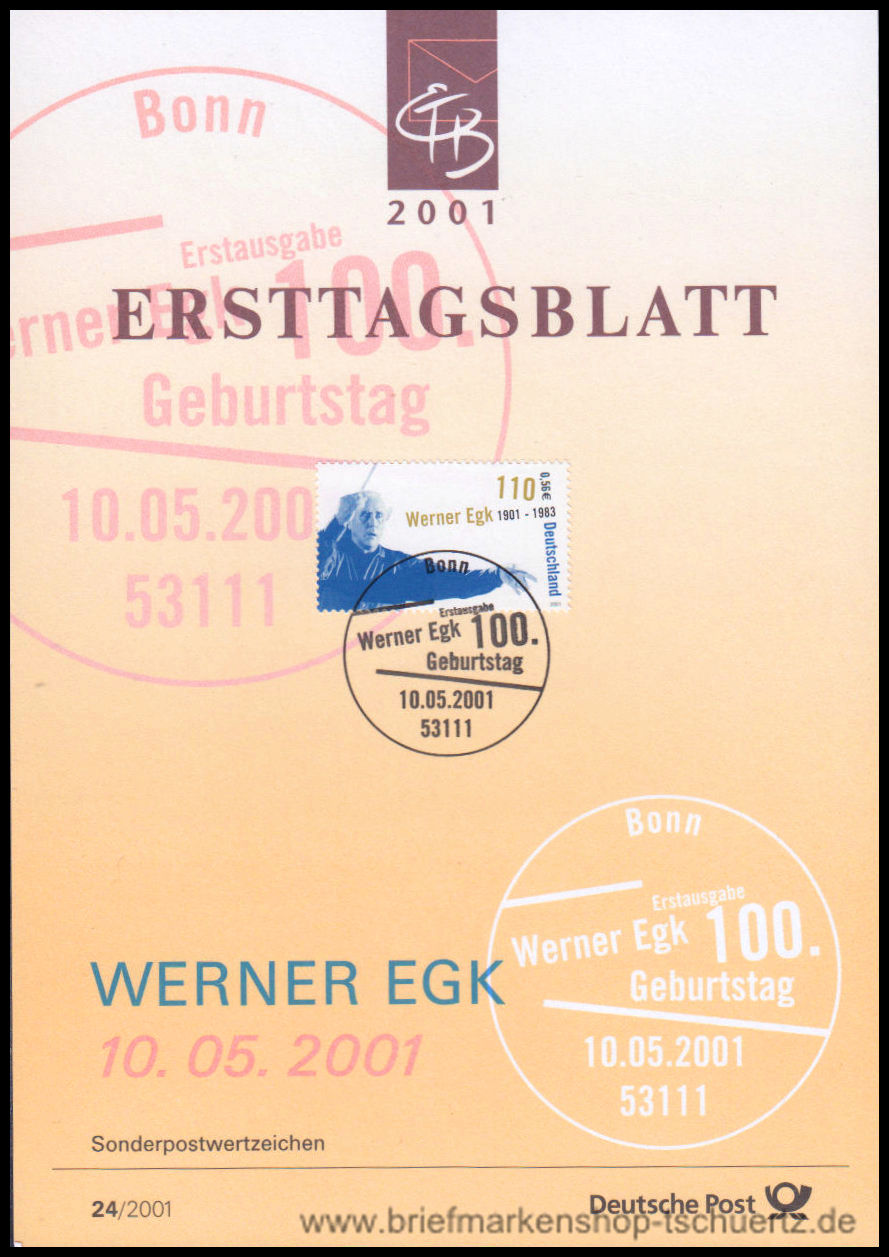 2001, 100. Geburtstag von Werner Egk Ersttagsblatt