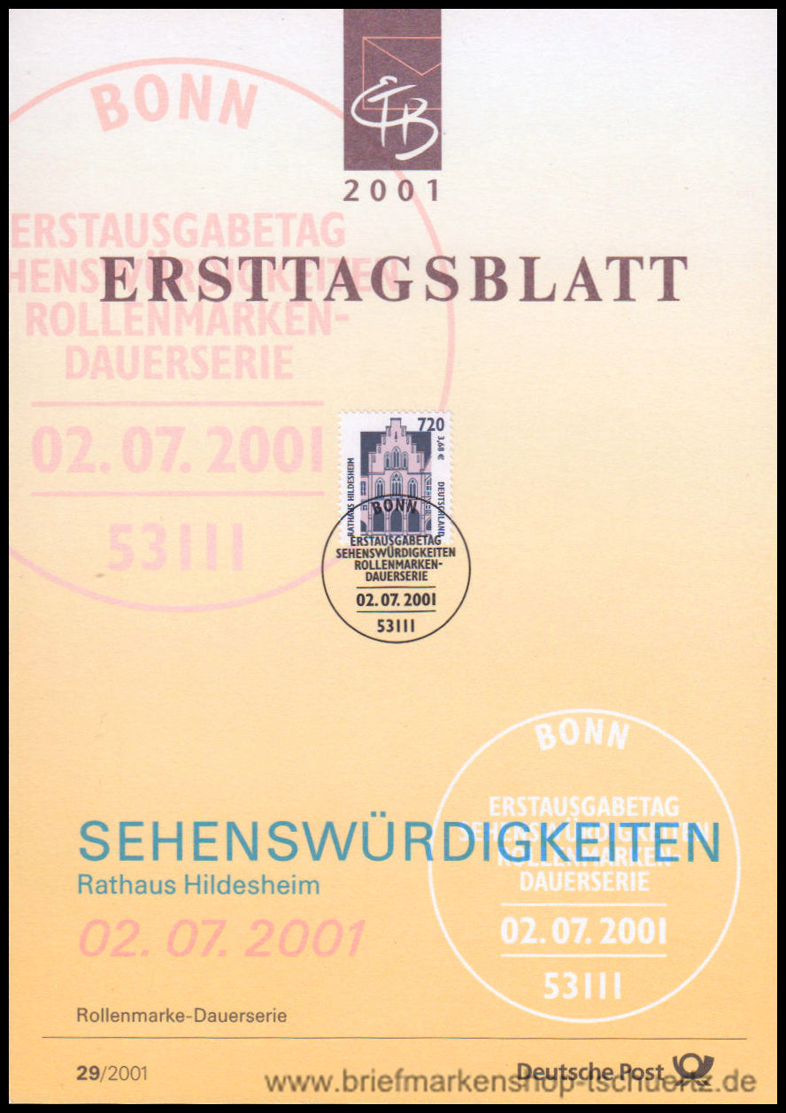 2001, Freimarke: SehenswürdigkeitenErsttagsblatt