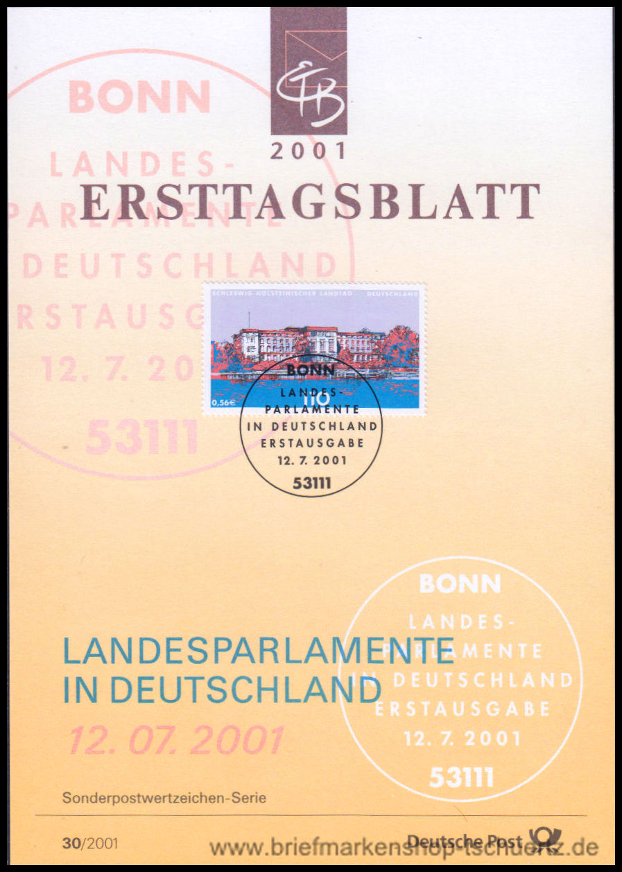 2001, Landesparlamente in Deutschland (XI) Ersttagsblatt