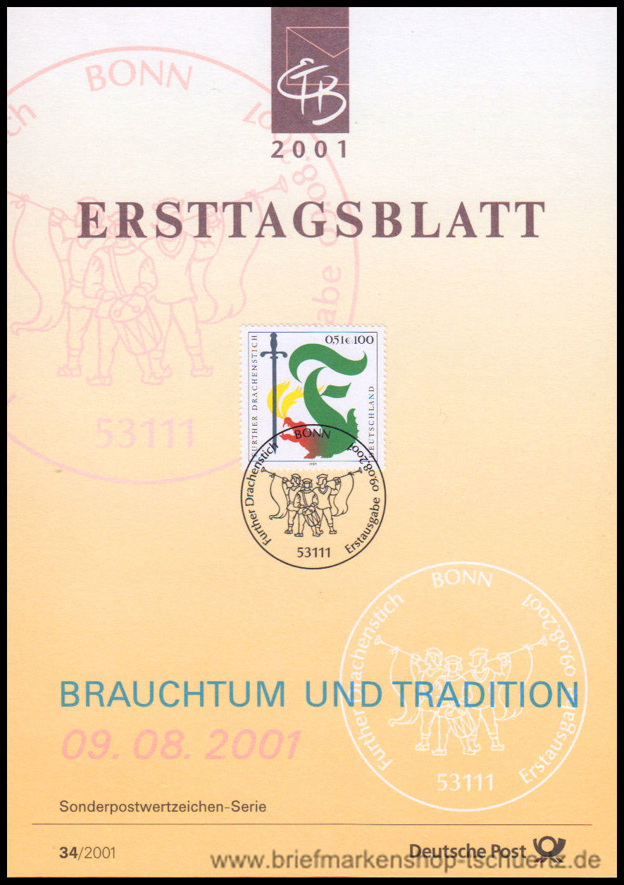 2001, Brauchtum und Tradition (I) Ersttagsblatt