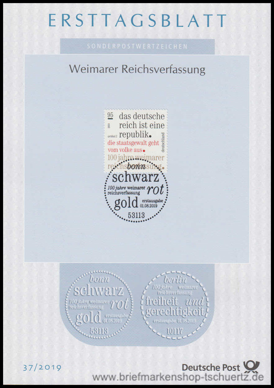 2019, Weimarer ReichsverfassungErsttagsblatt