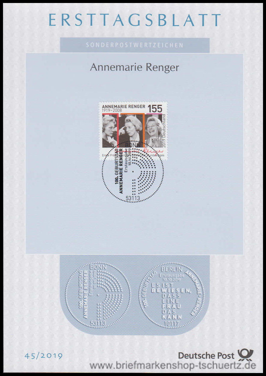 2019, Annemarie RengerErsttagsblatt