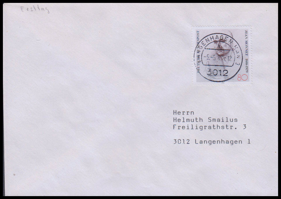 1988, 100. Geburtstag von Jean MonnetErsttagsbrief