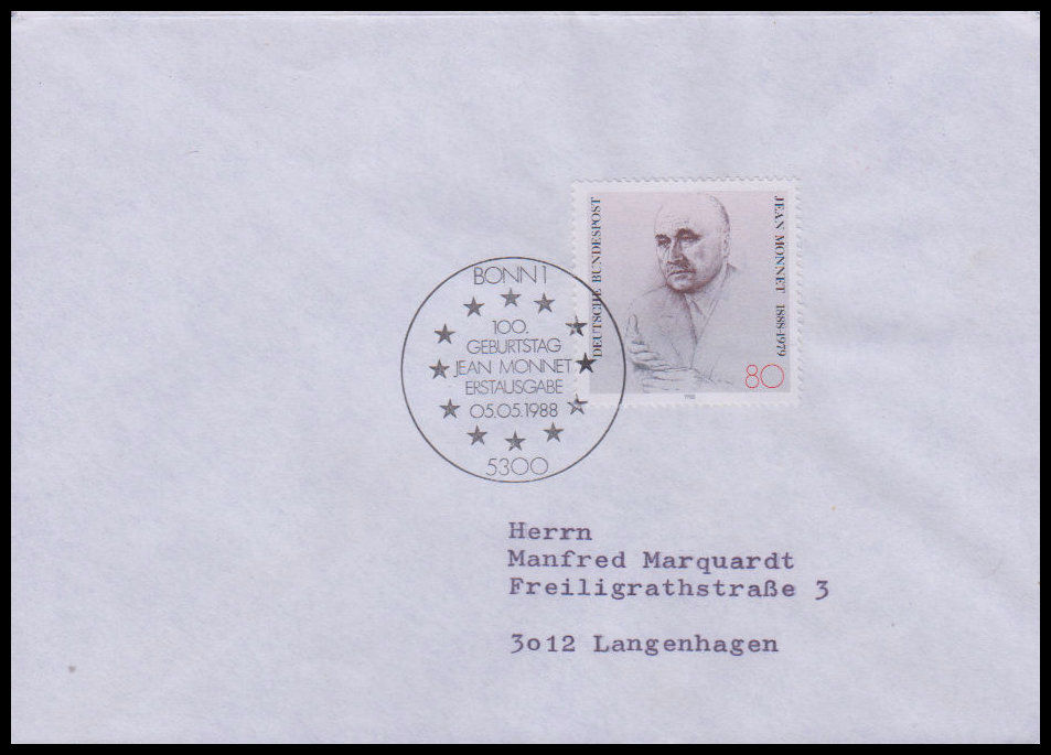 1988, 100. Geburtstag von Jean MonnetErsttagsbrief