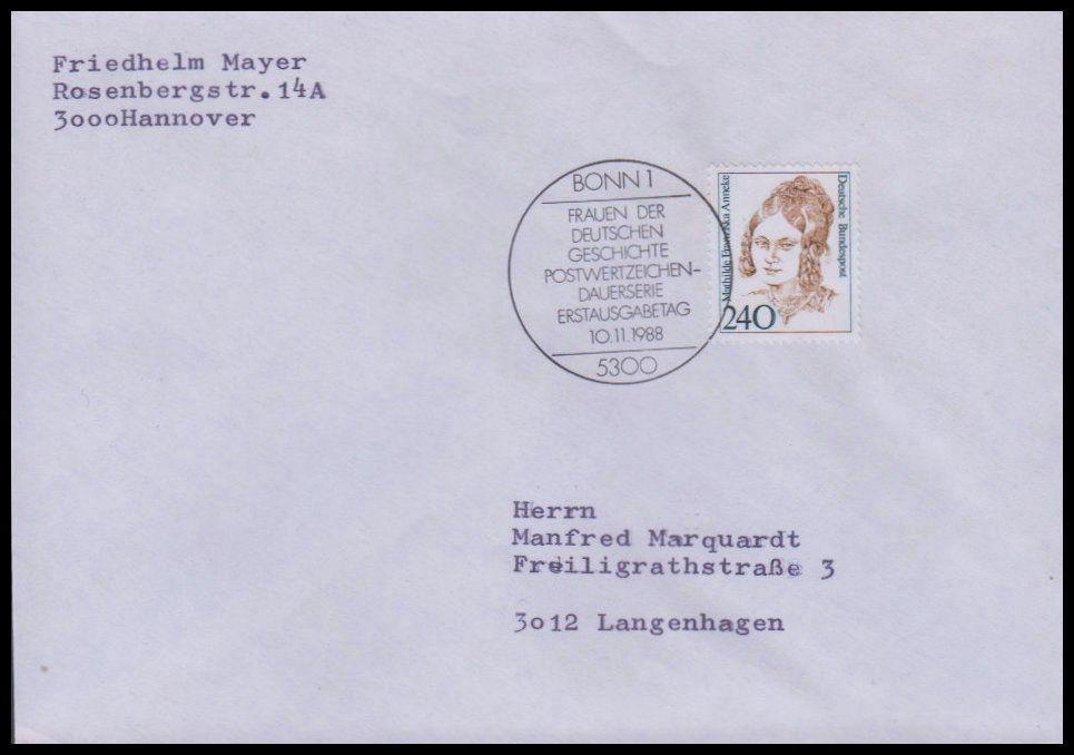 1988, Freimarken: Frauen der deutschen GeschichteErsttagsbrief