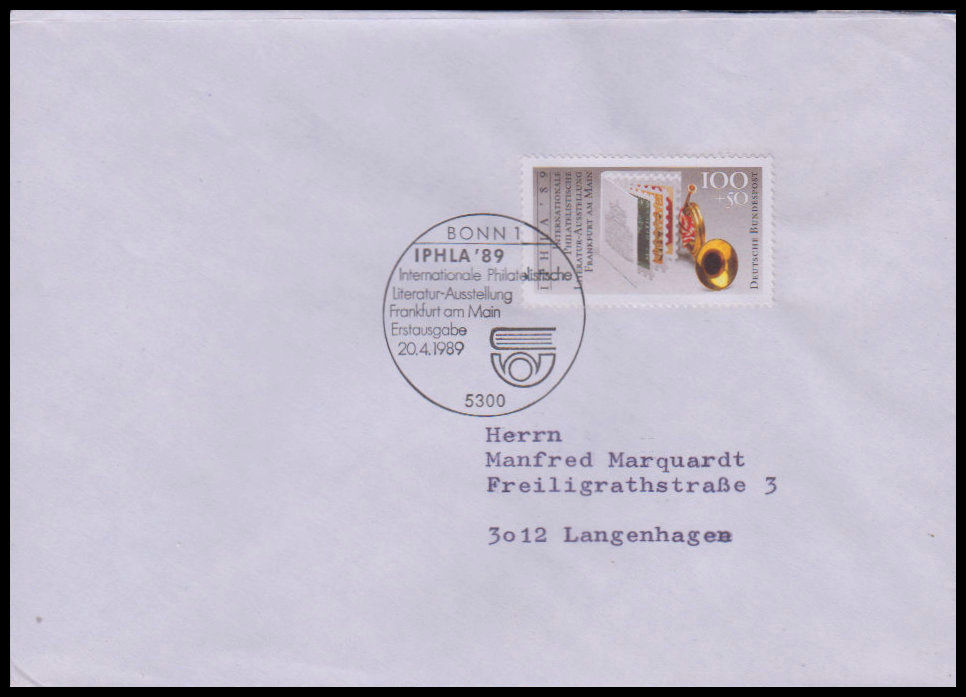 1989, Weltausstellung für pilatelistische Literatur IPHLA'89, FrankfurtErsttagsbrief
