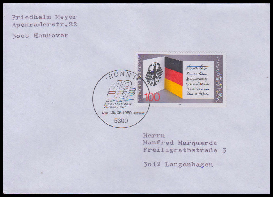 1989, 40 Jahre Bundesrepublik DeutschlandErsttagsbrief