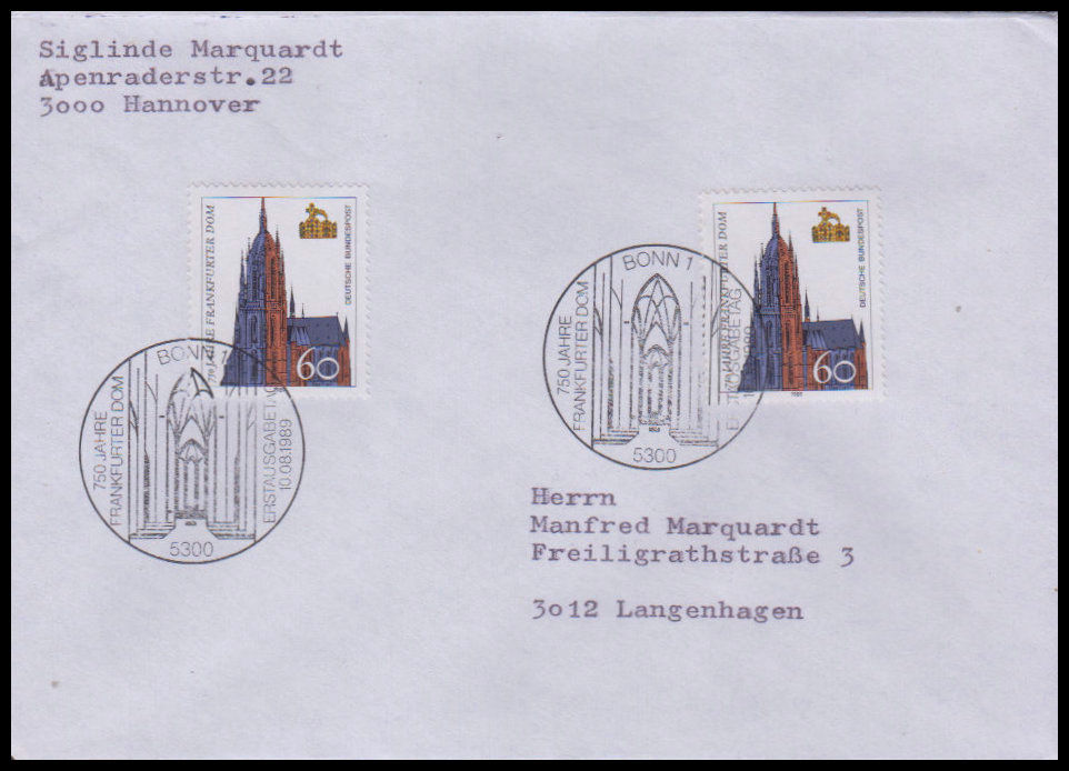 1989, 750 Jahre Dom Frankfurt a. M.Ersttagsbrief