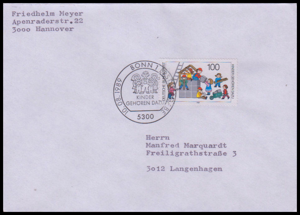 1989, "Kinder gehören dazu"Ersttagsbrief