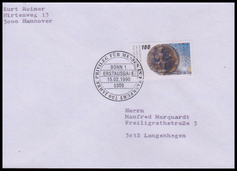 1990, Privileg für Messen in FrankfurtErsttagsbrief