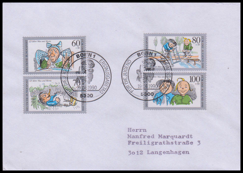 1990, Jugend: 125 Jahre "Max und Moritz"Ersttagsbrief