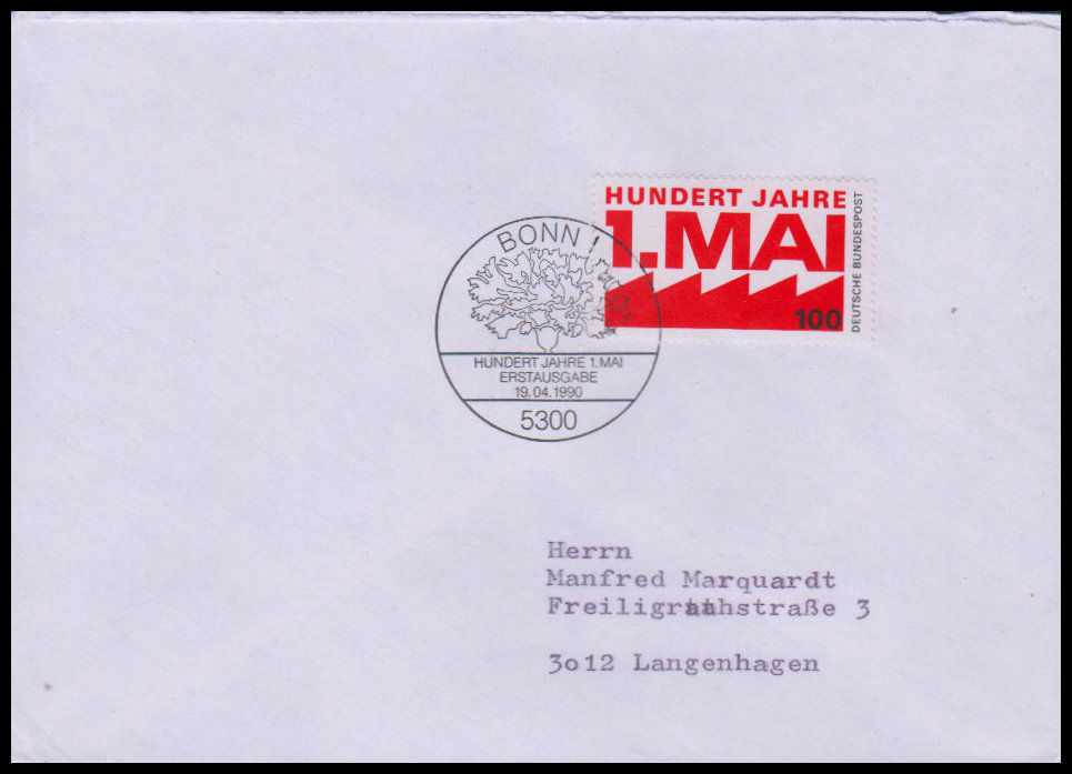 1990, 100 Jahre Tag der ArbeitErsttagsbrief