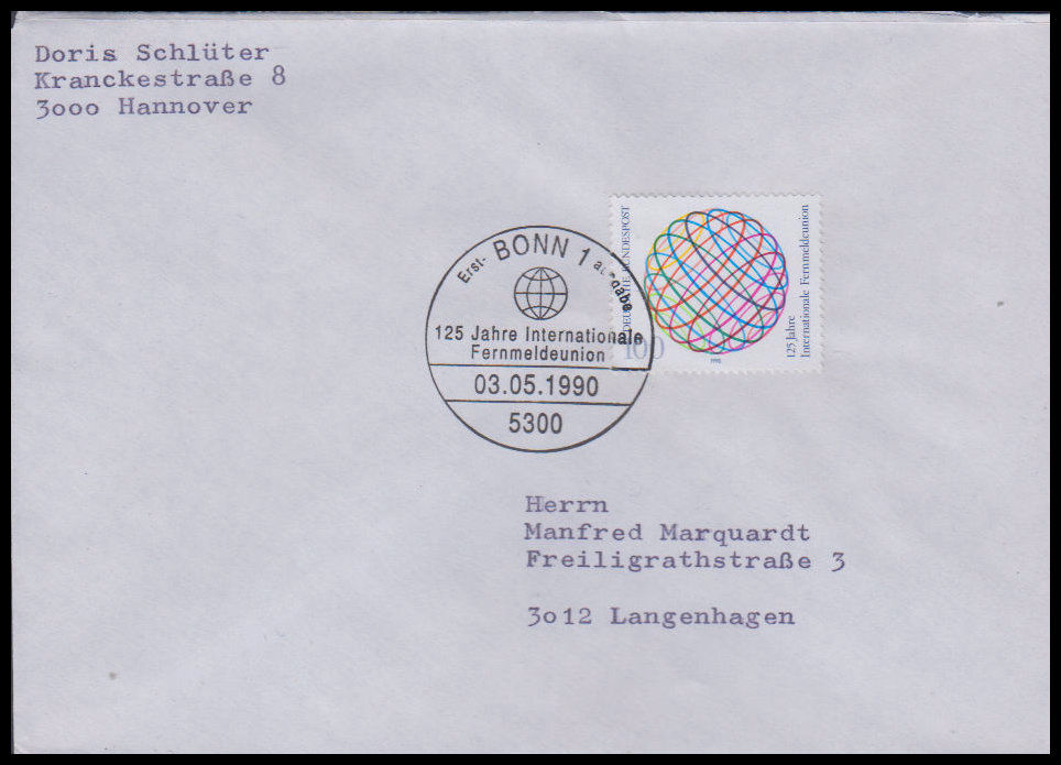 1990, 125 Jahre Internationale Fernmeldeunion (UIT)Ersttagsbrief