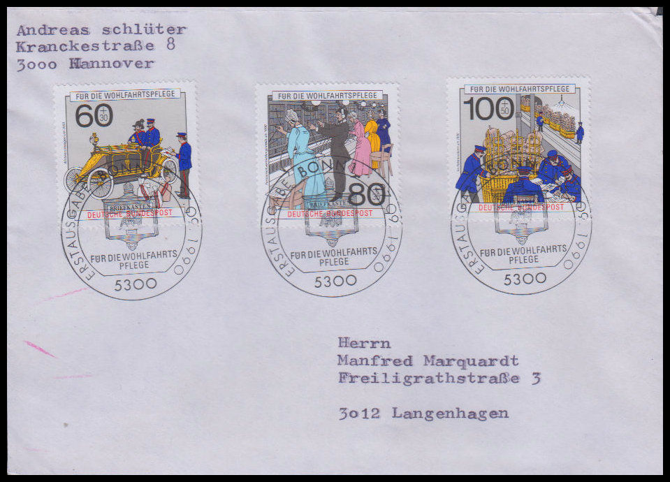 1990, Wohlfahrt: Geschichte der Post und TelekommunikationErsttagsbrief