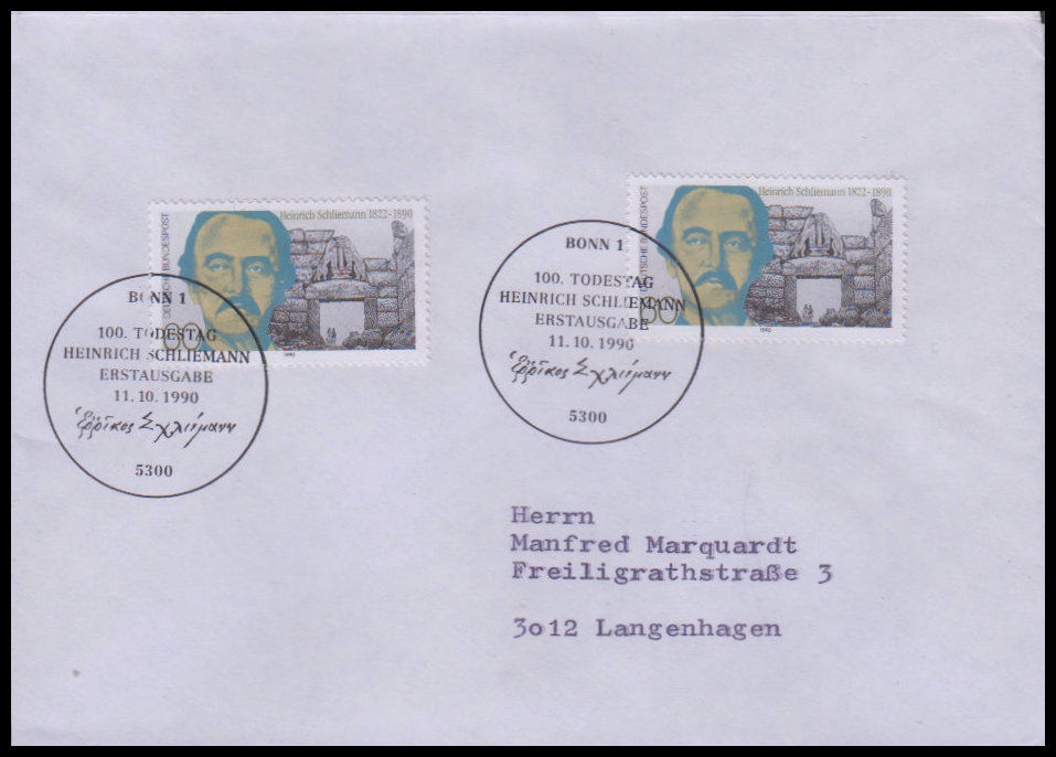 1990, 100. Todestag von Heinrich SchliemannErsttagsbrief