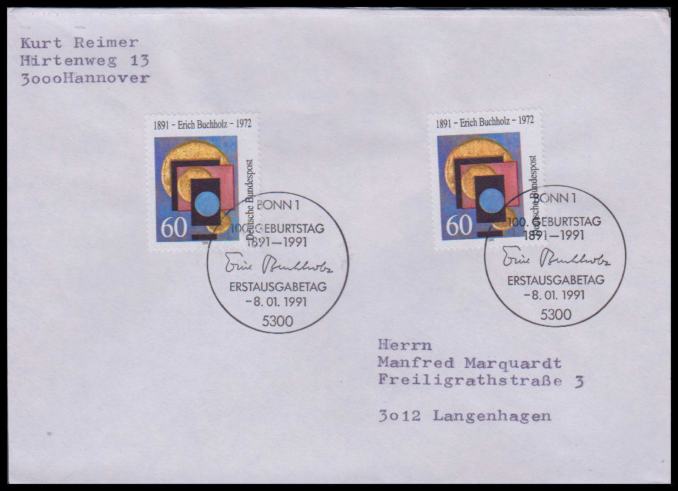 1991, 100. Geburtstag von Erich BuchholzErsttagsbrief