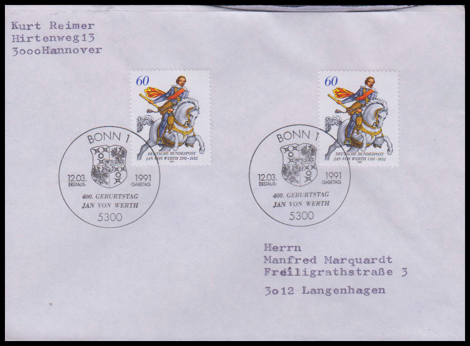 1991, 400. Geburtstag von Jan von WerthErsttagsbrief