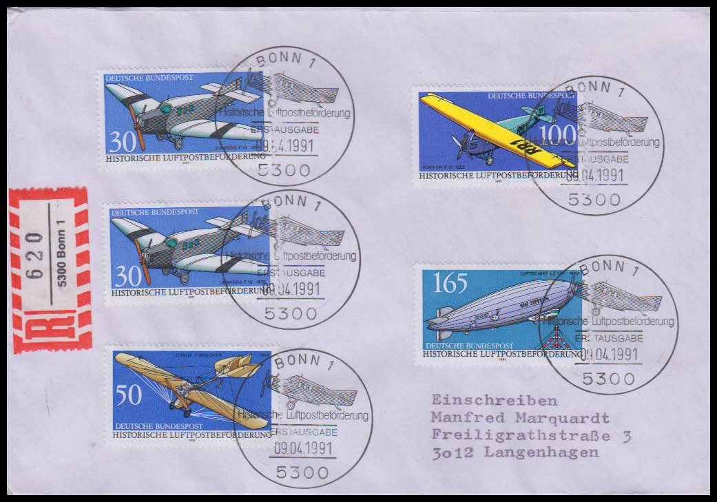 1991, Historische LuftpostbeförderungErsttagsbrief