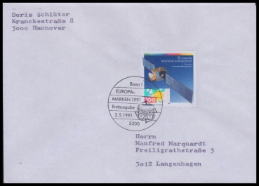 1991, Europa: Europäische WeltraumfahrtSatz (2 FDC), Ersttagsbriefe