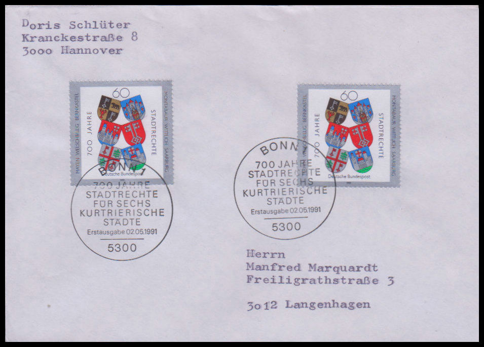 1991, 700 Jahre StadtrechteErsttagsbrief